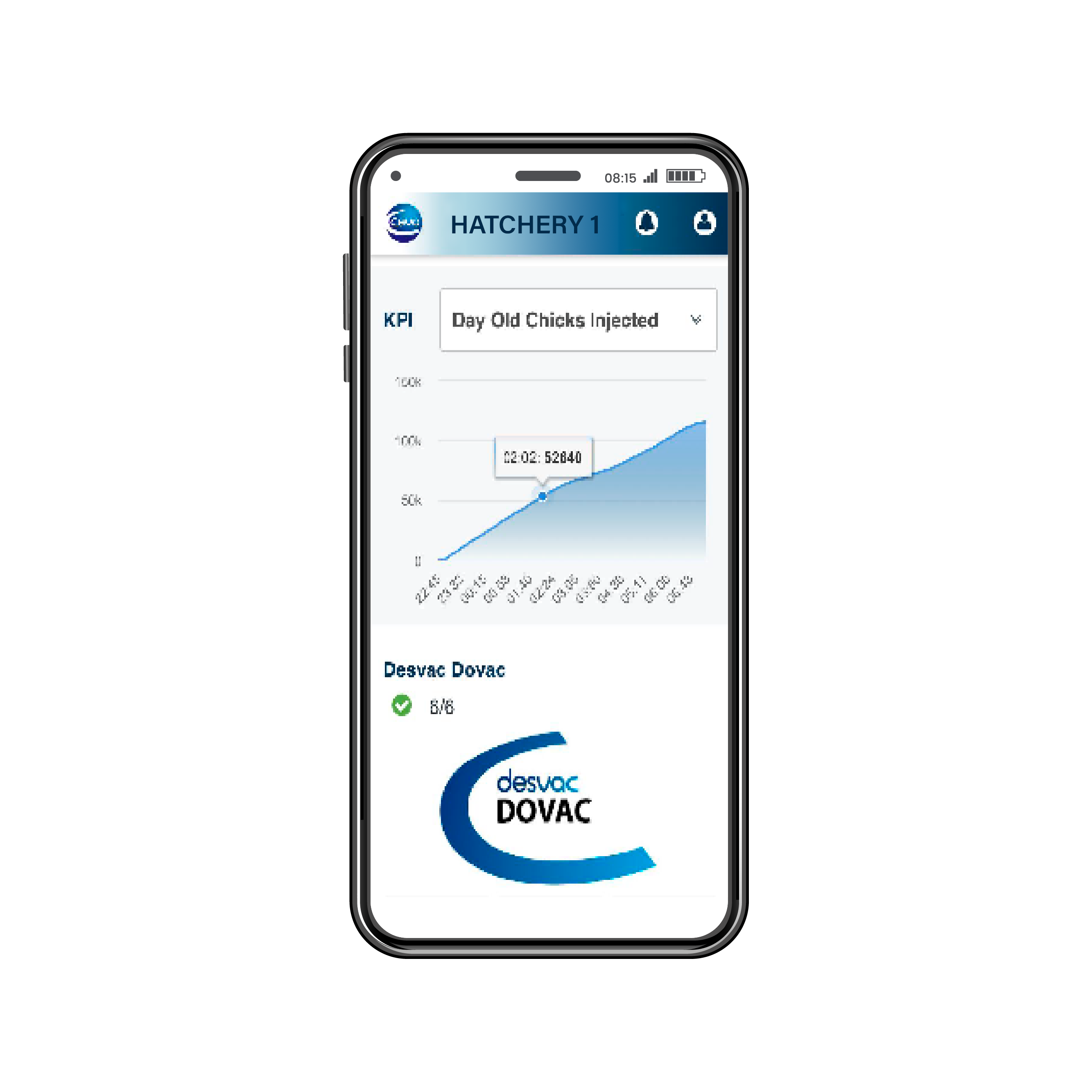 Λάβετε τη κατάσταση παραγωγής ή αυτόματες ειδοποιήσεις σε πραγματικό χρόνο, μέσω της εφαρμογής Ceva Hatchery Connect για κινητά.